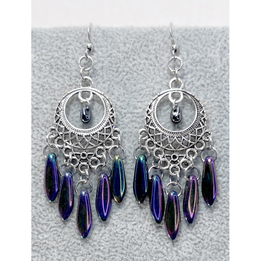 Black Multi-Strand Beaded Gothic Necklace with 4 Pendants