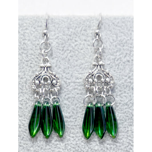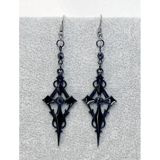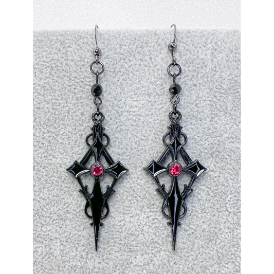 Black Pointed Gothic Cross with Blood Red Stone Earrings