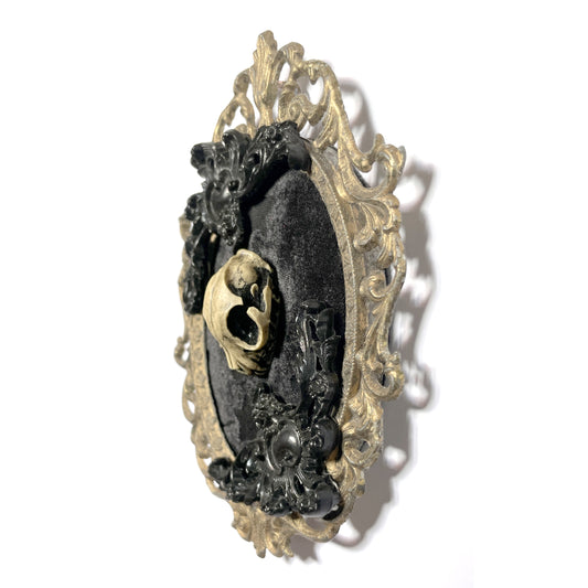 Cat Skull on Black Velvet Antique Framed Gothic Home Deco