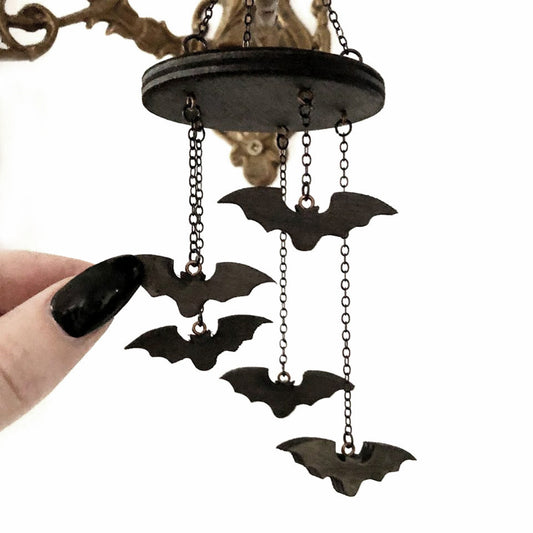 Tiny Stained Black Wood Bat Mobile with 5 Flying Bats