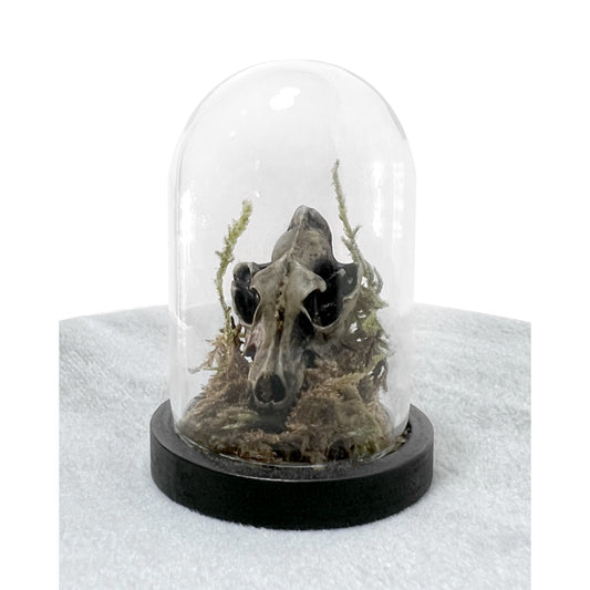 Tiny Metal Wolf Skull on Black Victorian Pendant
