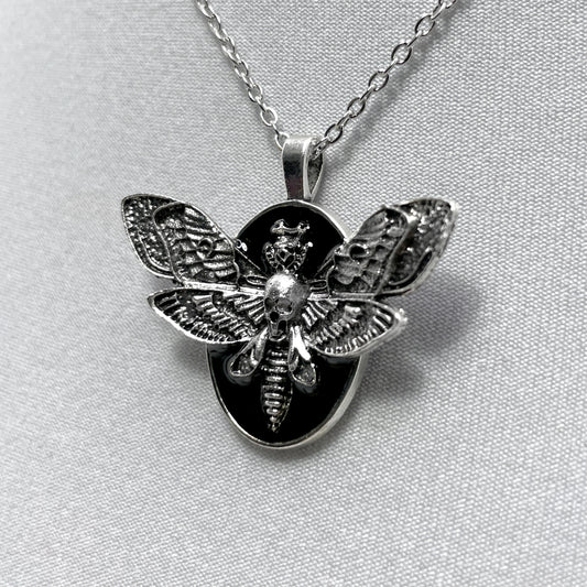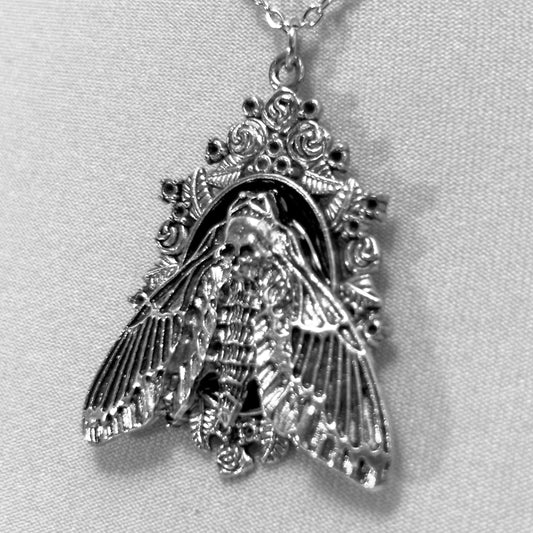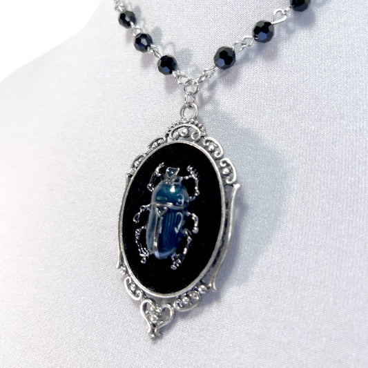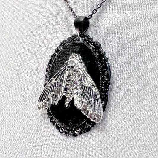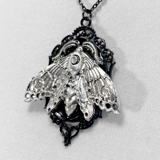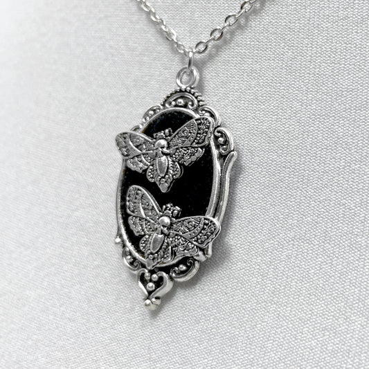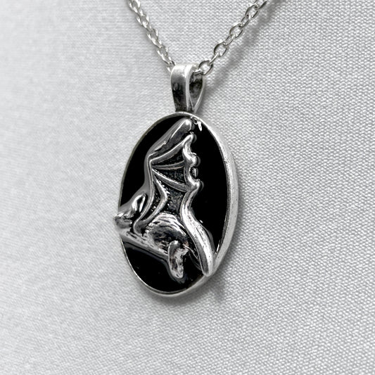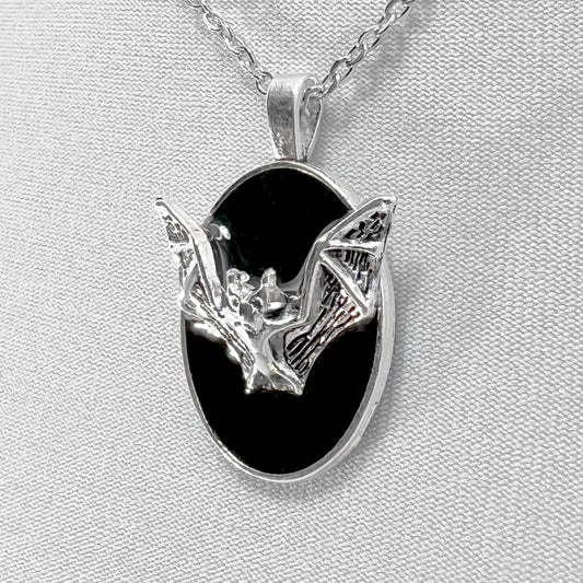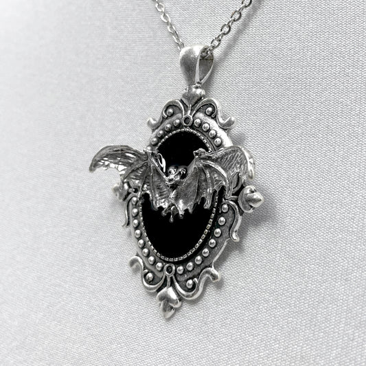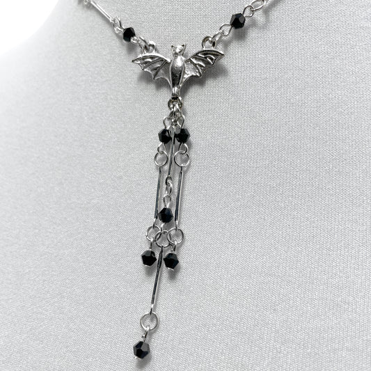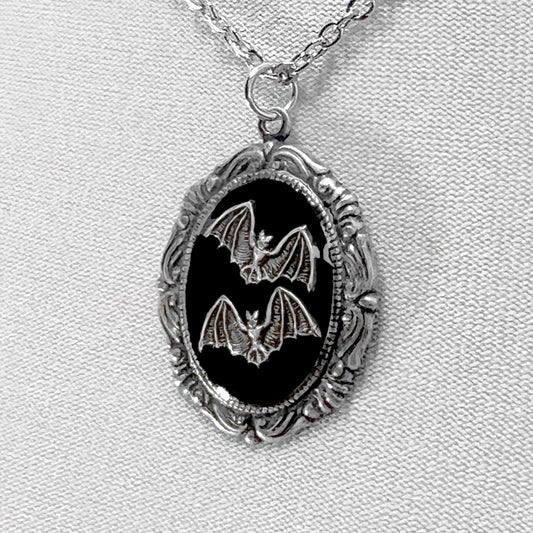 Tiny Silver Bats on Black Victorian Silver Necklace