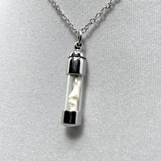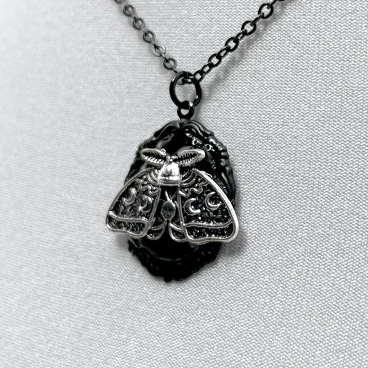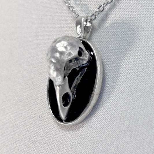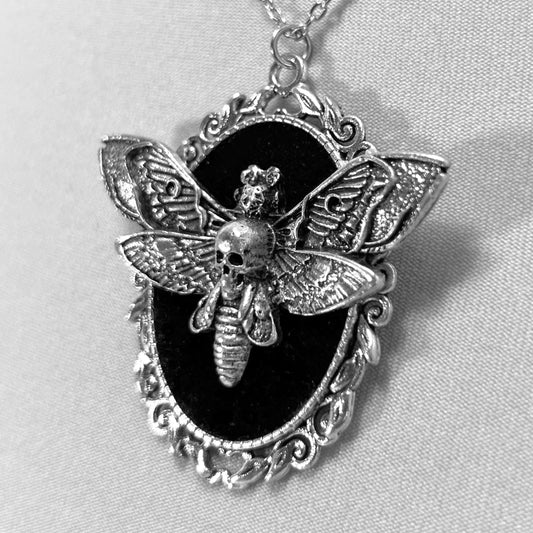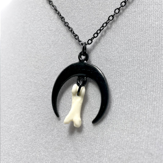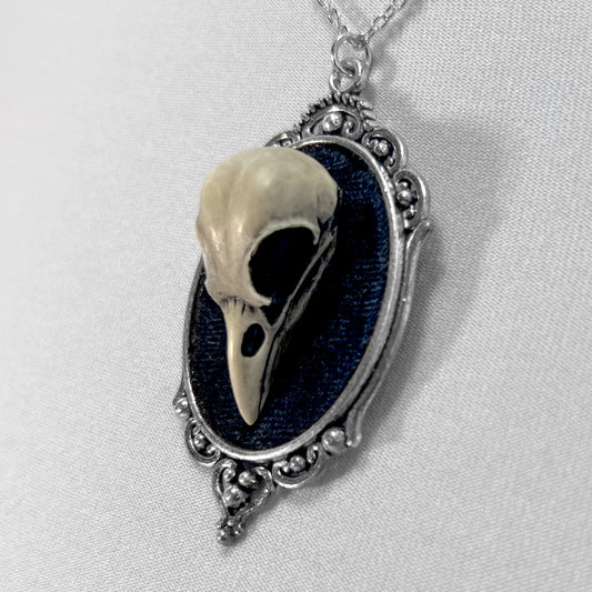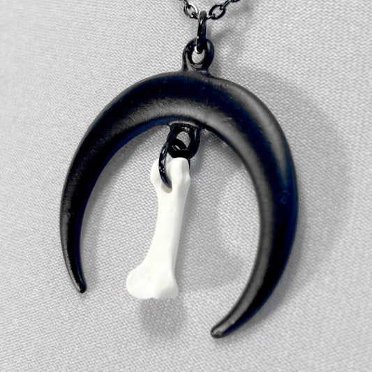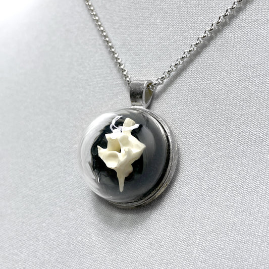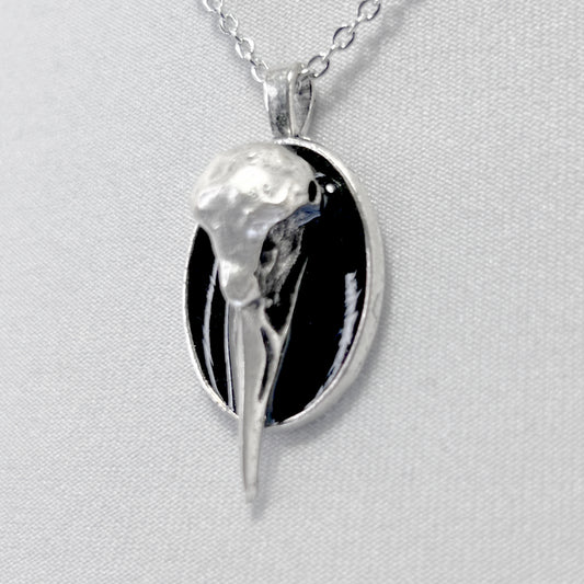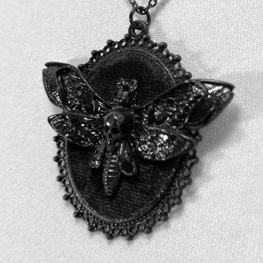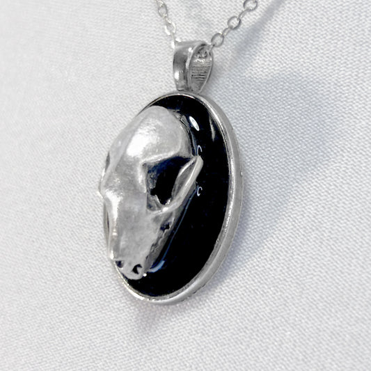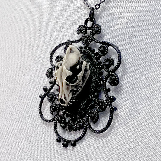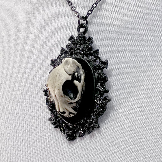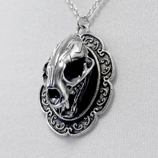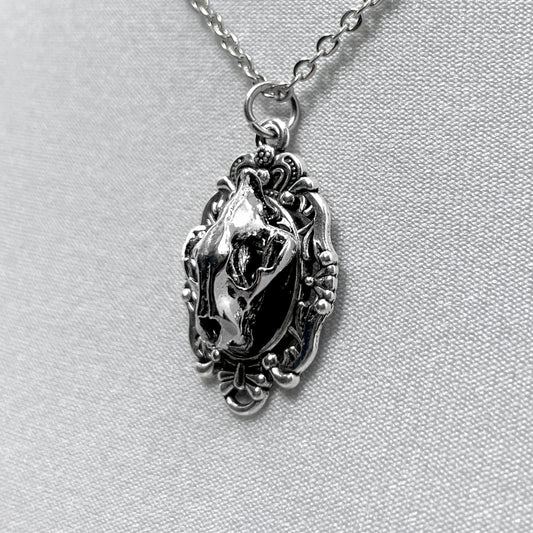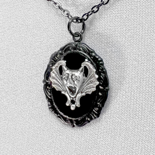 Tiny Metal Wolf Skull on Black Victorian Pendant