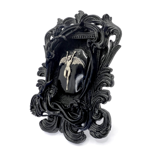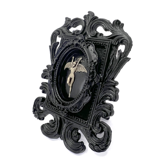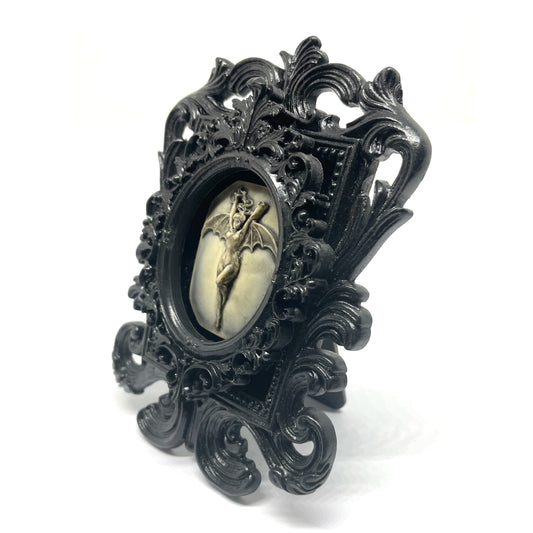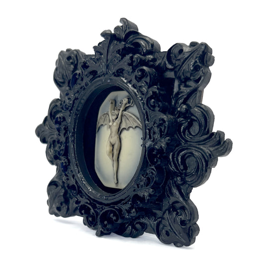 Small Black Resin Frame with Bat Woman on Black Velvet Gothic Home Deco
