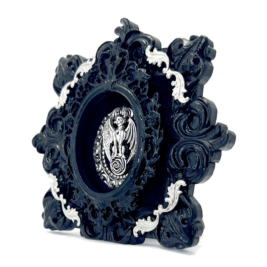 Small Black Resin Frame with Bat Cat on Black Velvet Gothic Home Deco