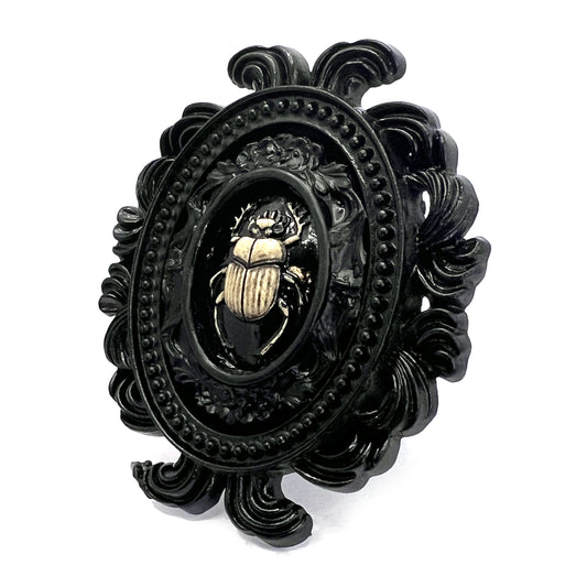 Small Black Resin Oval Frame with Scarab Gothic Home Deco
