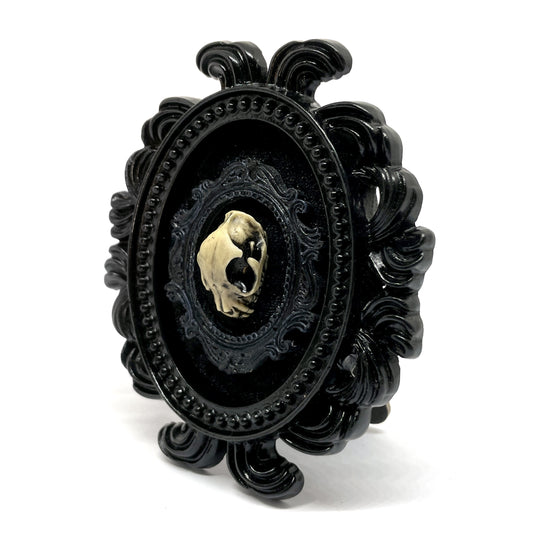 Small Black Resin Oval Frame with Bat Skull on Black Velvet Gothic Home Deco