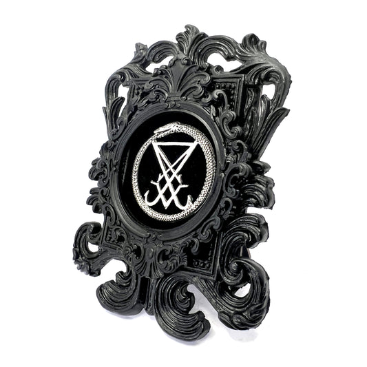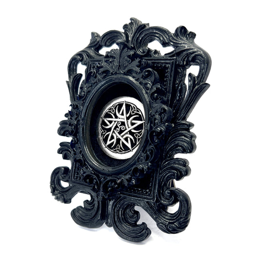 Small Black Resin Square Frame with Silver Sigil on Black Velvet Gothic Home Deco