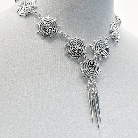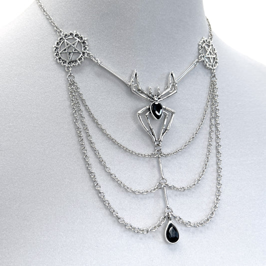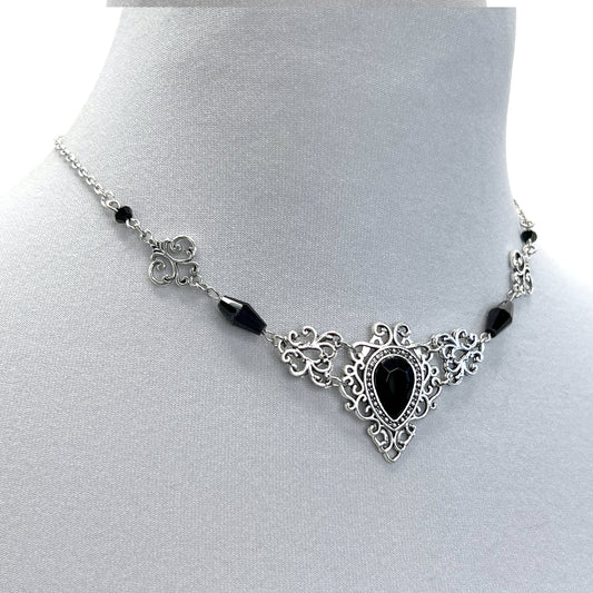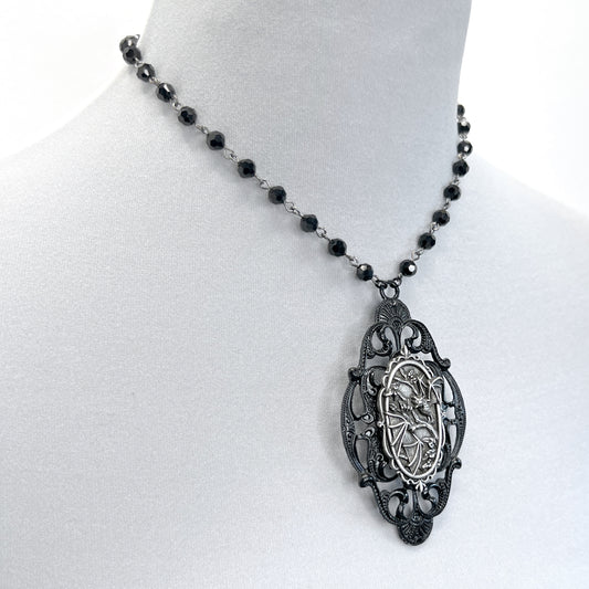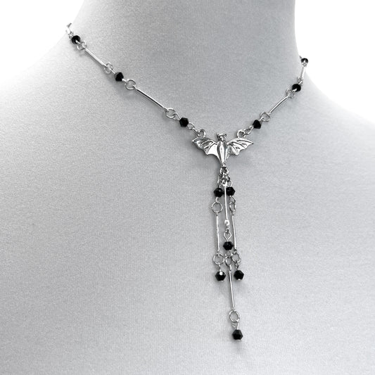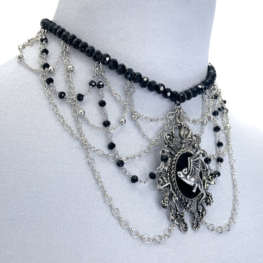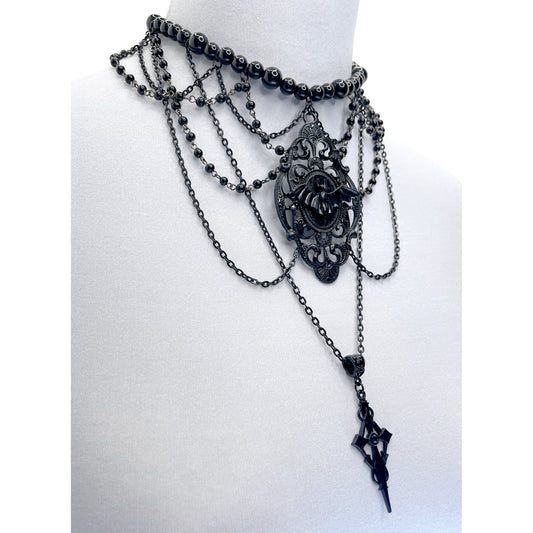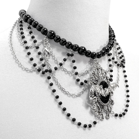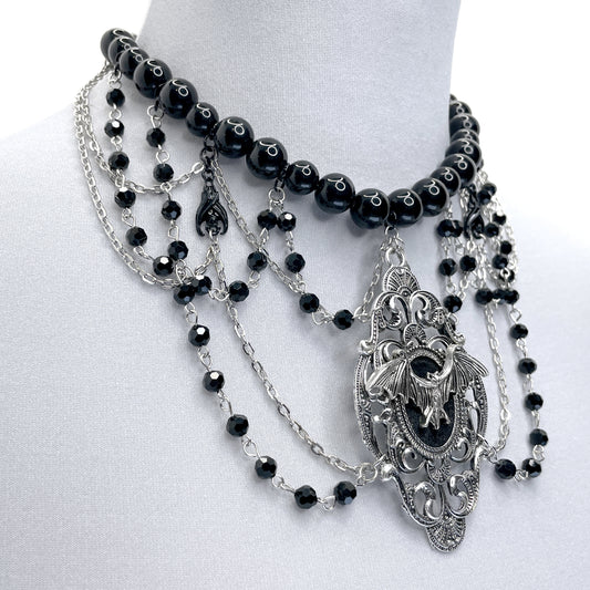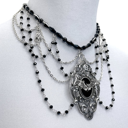 Silver with Black Multi-Strand Gothic Victorian Necklace with Bat