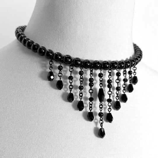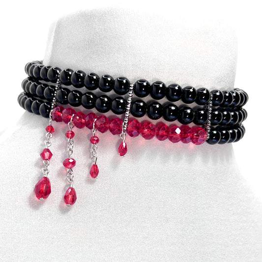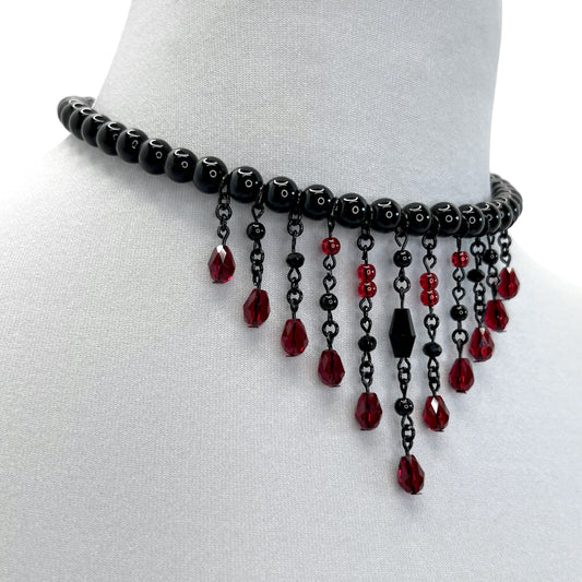Black and Red Glass Bead Fringe Gothic Choker Necklace (Copy)