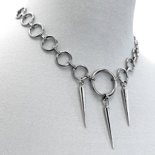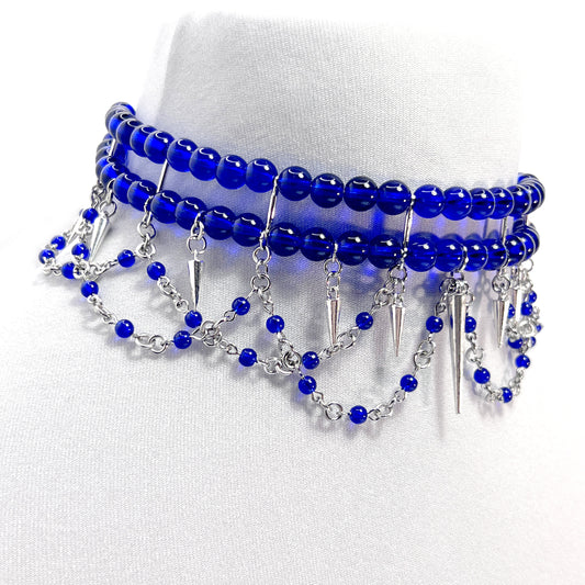 Dark Blue Beaded Gothic Choker Necklace with Spikes