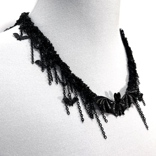 Black and Silver Multi-Strand Gothic Bat Necklace