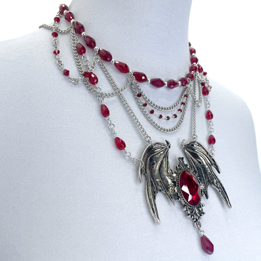 Red and Silver Dragon/Bat Wing Gothic Necklace