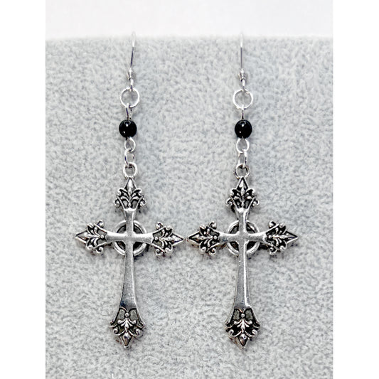 AusverkauftSilver Gothic Cross and Bead Earrings