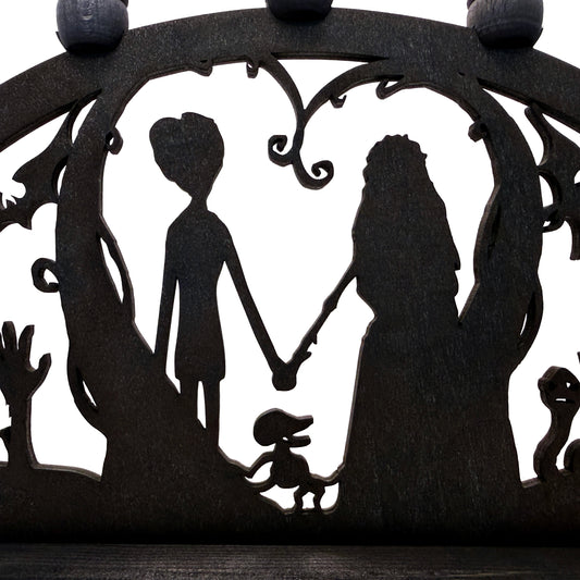 Jack & Sally Gothic Christmas / Holiday Tree Ornament - Black Stained Wood